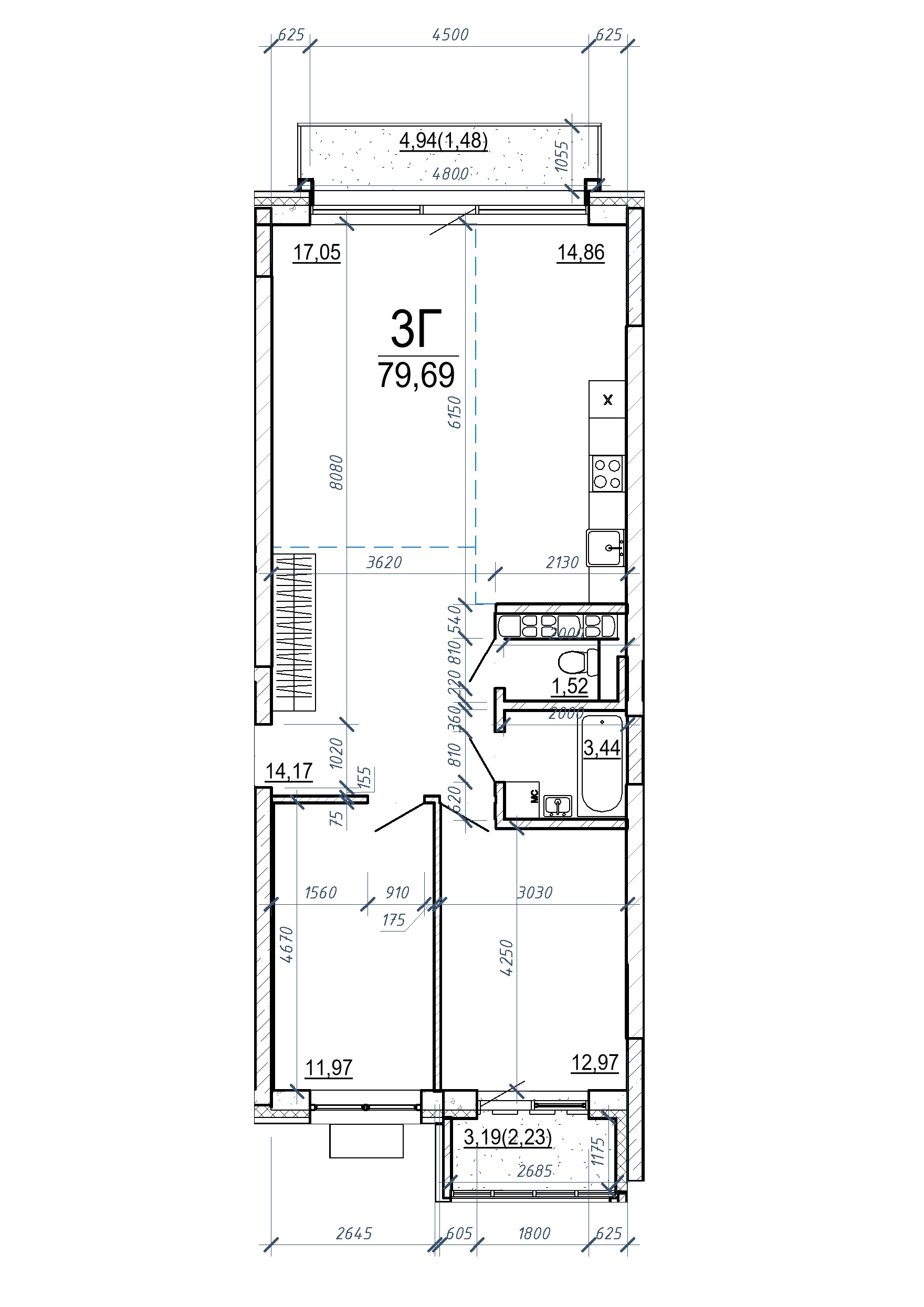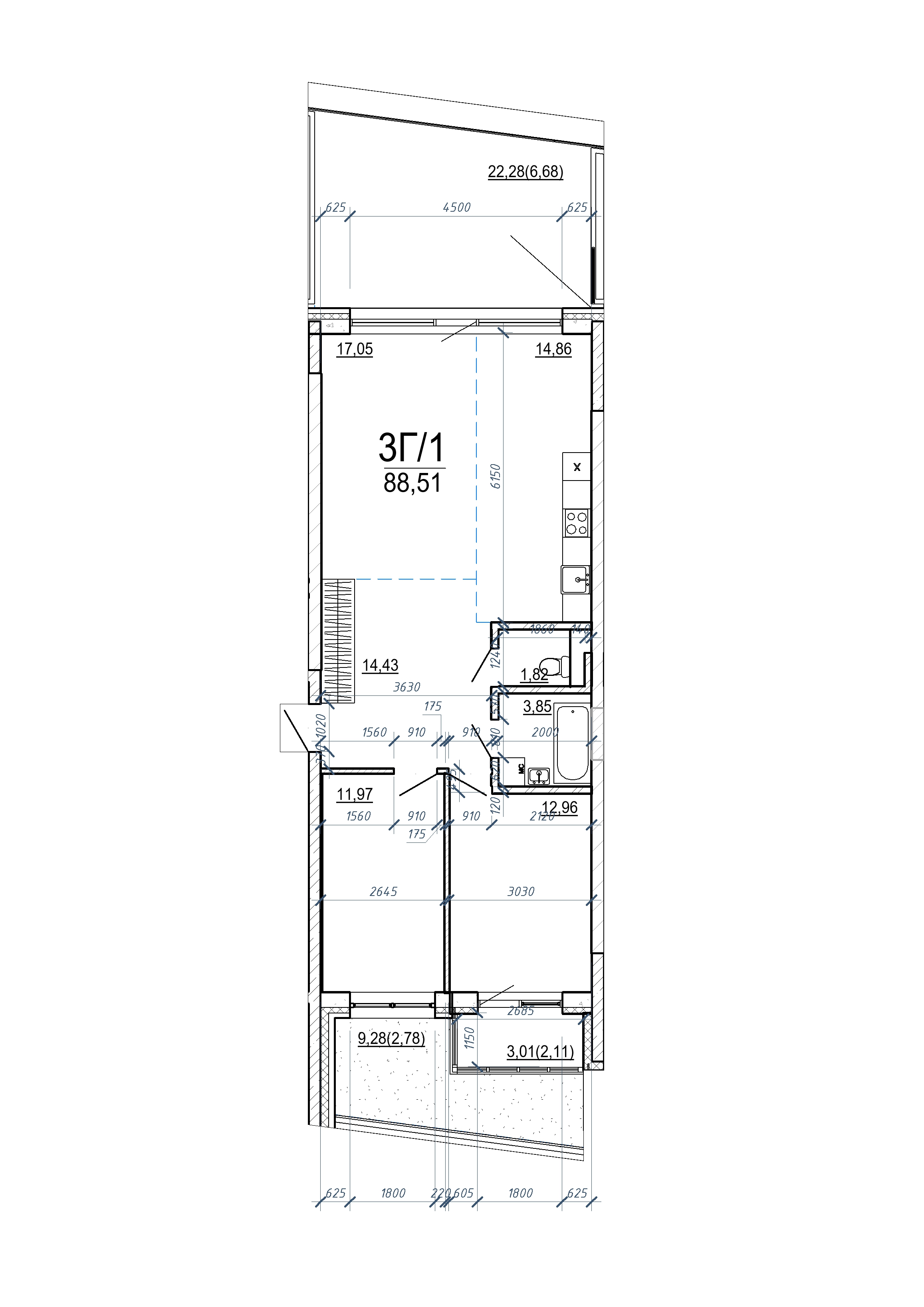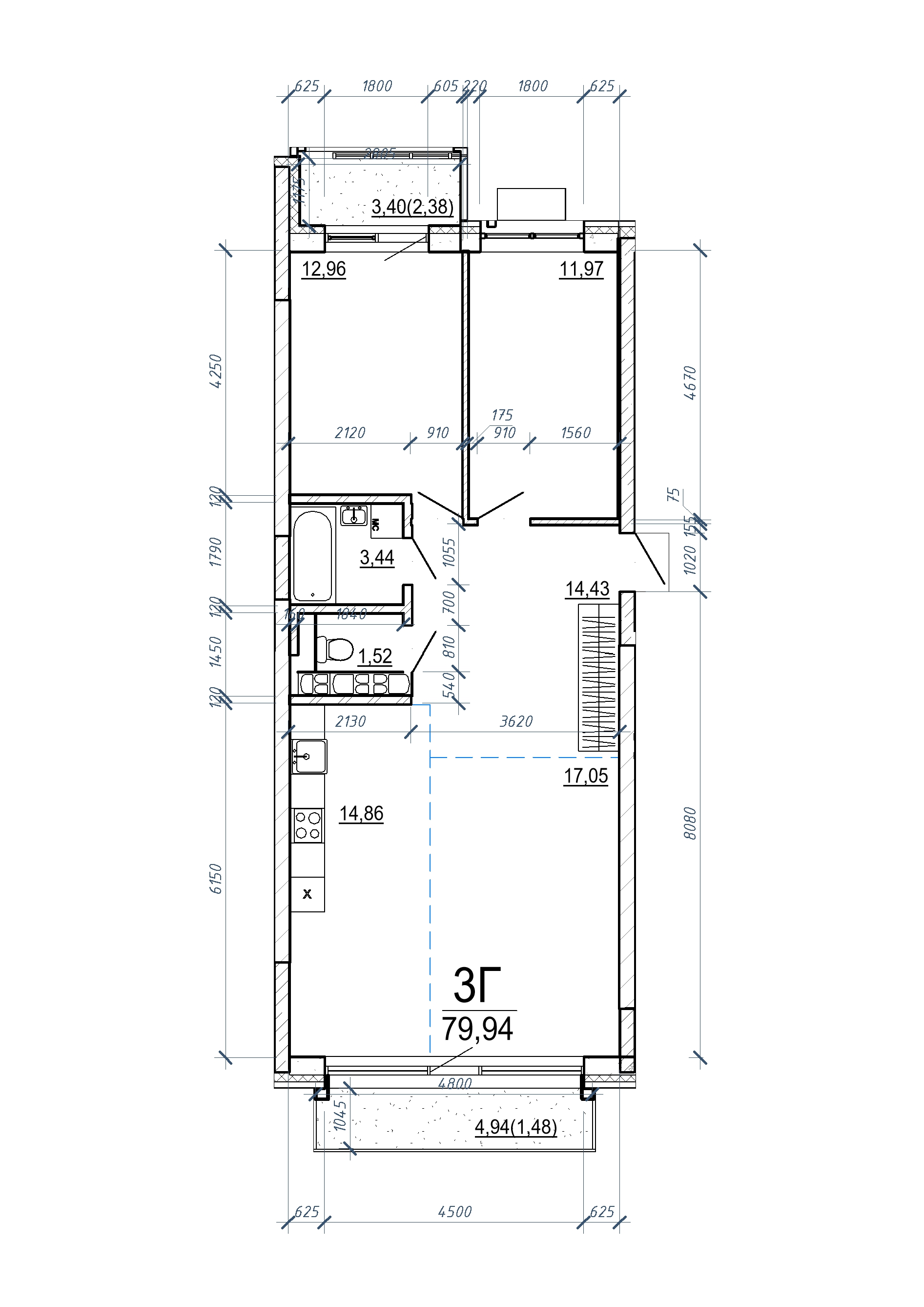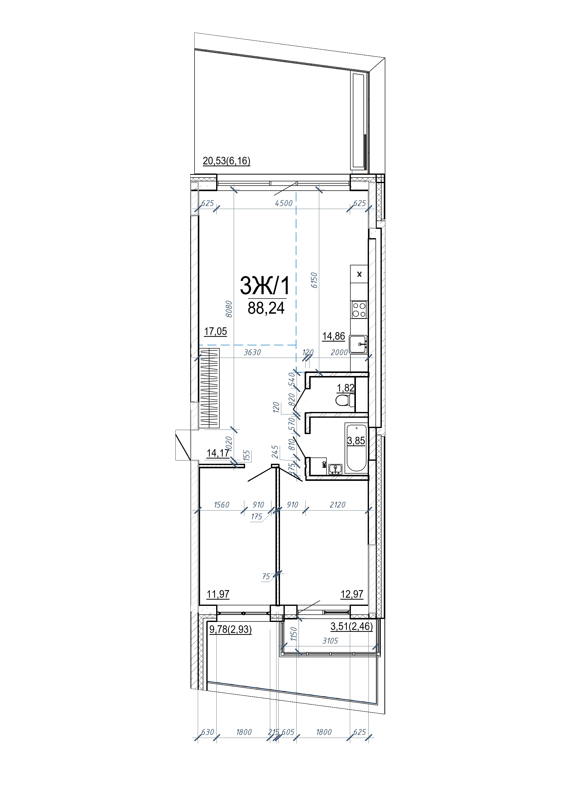 1 и 3-комнатные квартиры, расположенные на 4 этаже - 3100 долларам США