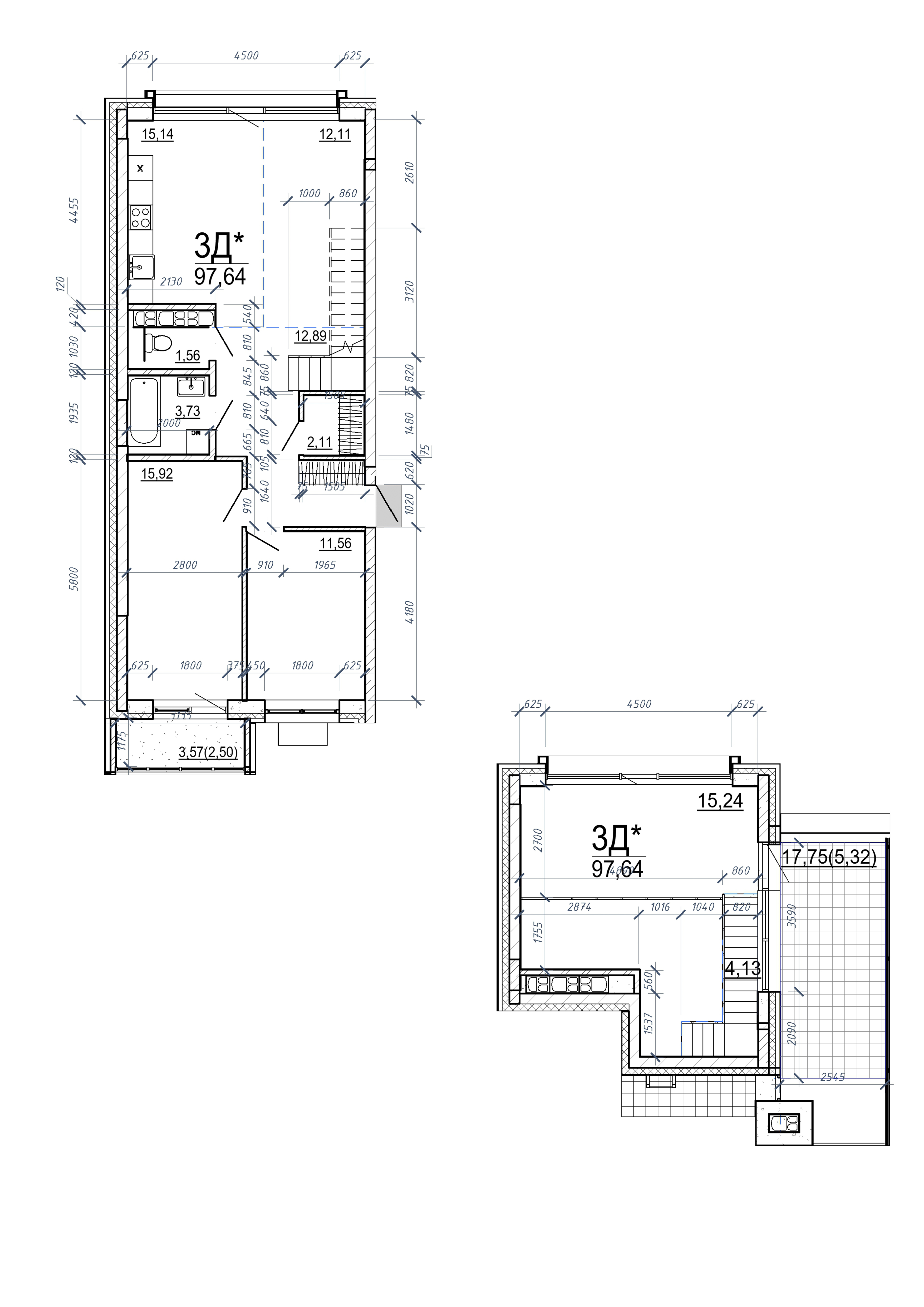 В доме представлены разнообразные планировочные решения от компактных студий до просторных четырехкомнатных квартир, в том числе квартиры со вторым светом и собственными террасами.
