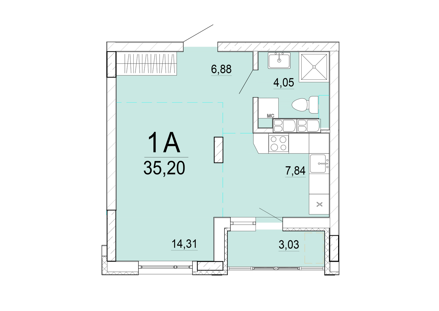 ЖК "Чайка" Октябрьской Революции ул., д. №2.2 по ГП, г.Брест, застройщик ООО "АйронИнвестПроект" ЖК "Чайка" (г. Брест) , 1-комнатная квартира