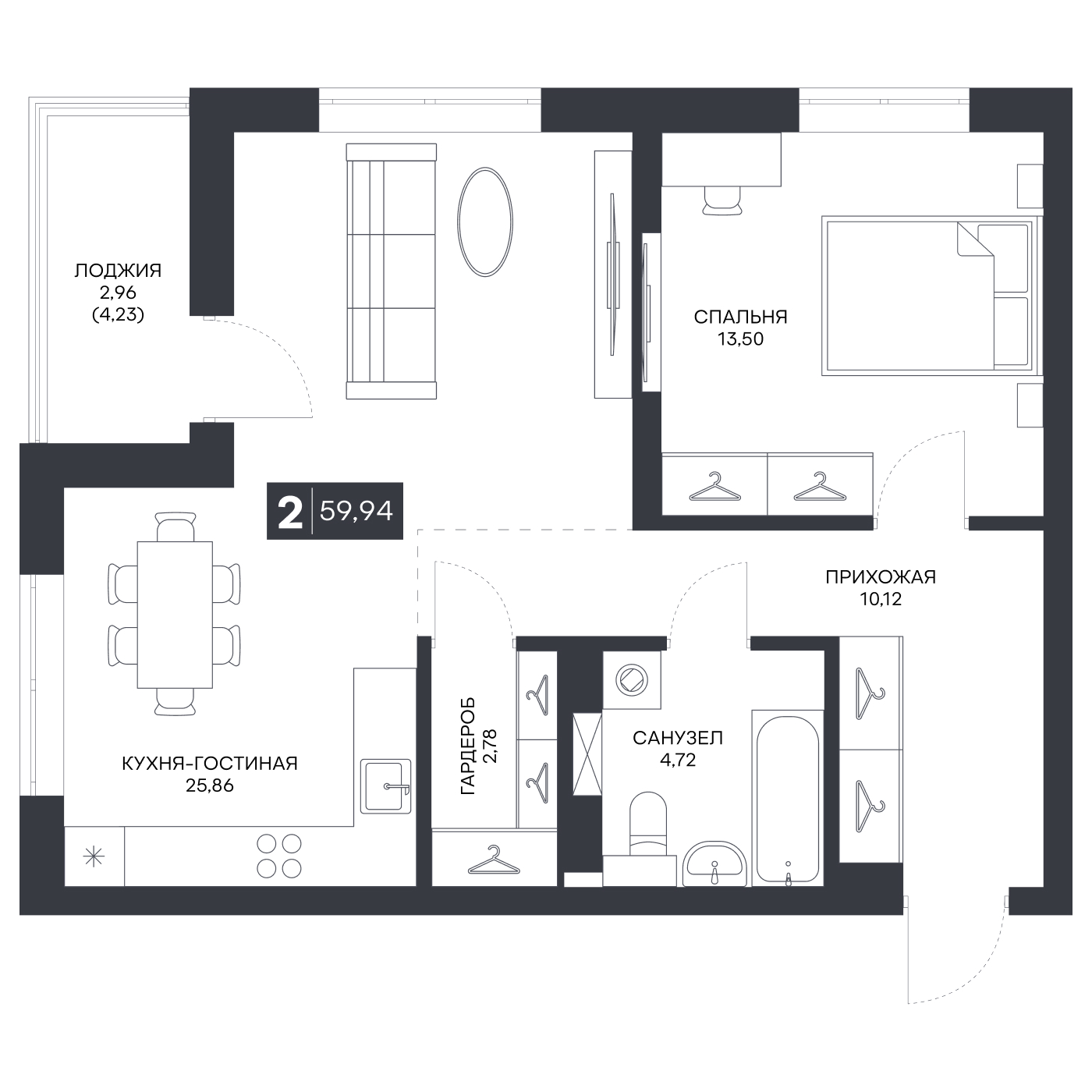 Квартиры площадью: 41 м² - 112 м² ЖК «NEW CITY» (г. Гродно) , 2-комнатная квартира