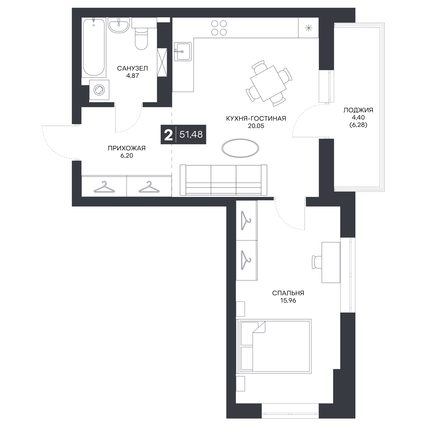 Квартиры площадью: 41 м² - 112 м² ЖК «NEW CITY» (г. Гродно) , 2-комнатная квартира